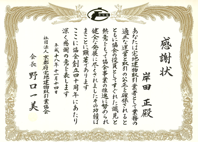 | 所属団体 | (公社)京都府宅地建物取引業協会会員、(公社)近畿地区不動産公正取引協議会加盟 |